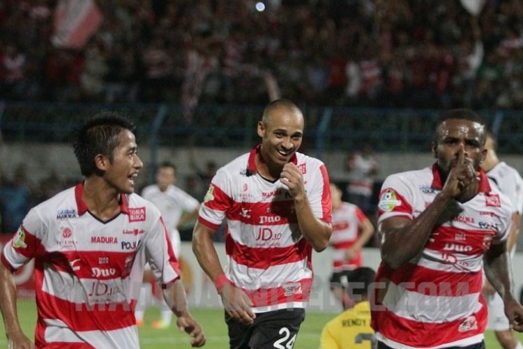 PAMEKASAN, KOMPAS.com - Trio Peter Odemwingie, Slamet Nurcahyo, dan Greg Nwokolo (PSG) diprediksi akan menjadi batu sandungan Persib Bandung yang mengincar poin pada pertandingan lanjutan Liga 1 di markas Madura United. Bermodal kemenangan melawan PSM Makassar, Persib Bandung kembali membidik poin penuh saat menantang Madura United di Stadion Gelora Ratu Pamelingan (SGRP) Pamekasan pada Minggu (9/7/2017) malam. Pelatih Persib, Djadjang Nurdjaman, berjanji akan tampil merepotkan tim berjuluk Laskar Sape Kerrab. Menurut Jajang, kondisi pemain Persib dalam kondisi prima dan penuh percaya diri setelah menaklukkan PSM, sang pemuncak klasemen sementara Liga 1. "Semoga tren positif kemarin juga terjadi di Pamekasan meskipun harus berjuang keras," terang Djadjang. Baca juga: Di SEA Games 2017, Indonesia Satu Grup dengan Thailand dan Vietnam Untuk meraih poin penuh, bukan pekerjaan mudah bagi Maung Bandung. Madura United memiliki sederetan pemain top seperti Greg Nwokolo, Peter Odemwingie dan Slamet Nurcahyo sehingga tidak dapat dipandang remeh. "Trio Peter-Slamet-Greg (PSG) patut diwaspadai. Jika tiga pemain ini dibiarkan berkembang dan leluasa, maka akan merepotkan kami," ungkap Djanur - panggilan akrab Djadjang. Pertandingan ini disebut sejumlah kelompok suporter Madura United sebagai laga big match karena akan mempertemukan dua marquee player yang juga mantan pemain Liga Inggris. Peter Odemwingie pernah merumput di Stoke City, serta Michael Essien yang pernah menjadi bintang Chelsea. Sampai pekan ke-13 ini, Odemwingie menjadi top scorer sementara dengan koleksi sembilan gol.